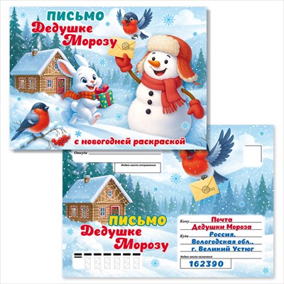 Открытка Письмо Дедушке Морозу с раскраской и художественным конвертом 01367