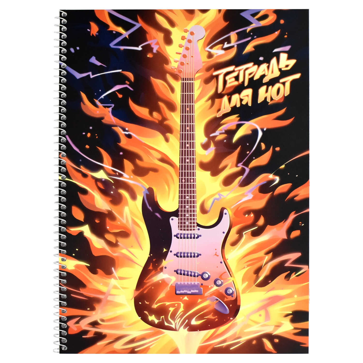 Тетрадь для нот 32 л. арт. 67562 ОГНЕННЫЙ АККОРД /А4, белый офсет, спираль по длинной стороне, облож.- мелованный картон 210 г/м², матовая ламинация.