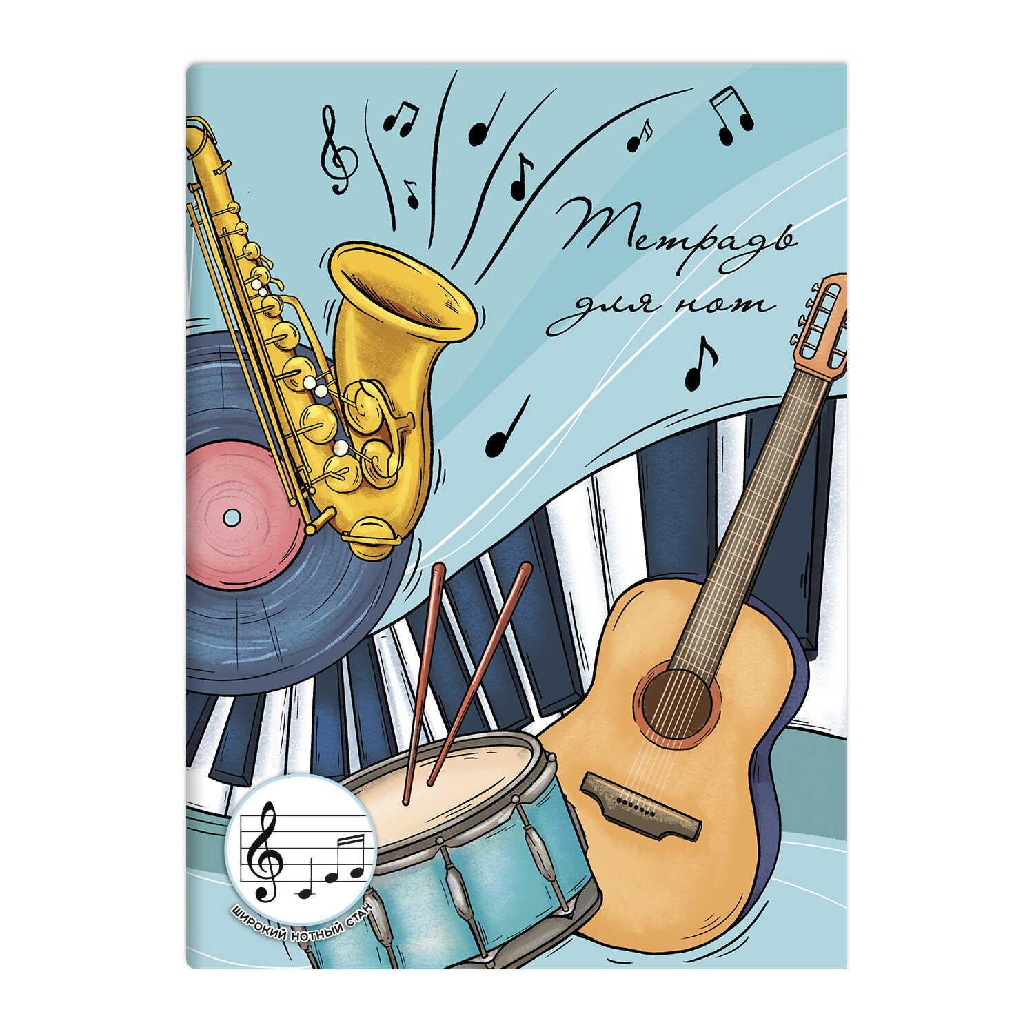 Тетрадь для нот 12л А4 Музыкальные инструменты белый офсет мягкий переплёт 2 скобы арт. 62793