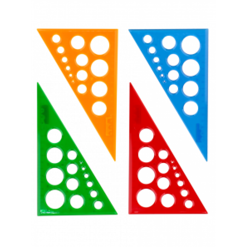 Треугольник 19см 30 градусов с окружностями ЦВЕТНОЕ ПРОЗРАЧНОЕ АССОРТИ отливная шкала Проф-пресс Л-6215