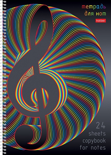 Тетрадь для нот 24л А4 205х295мм Со справ.инф на спирали -Музыка- Hatber 65970