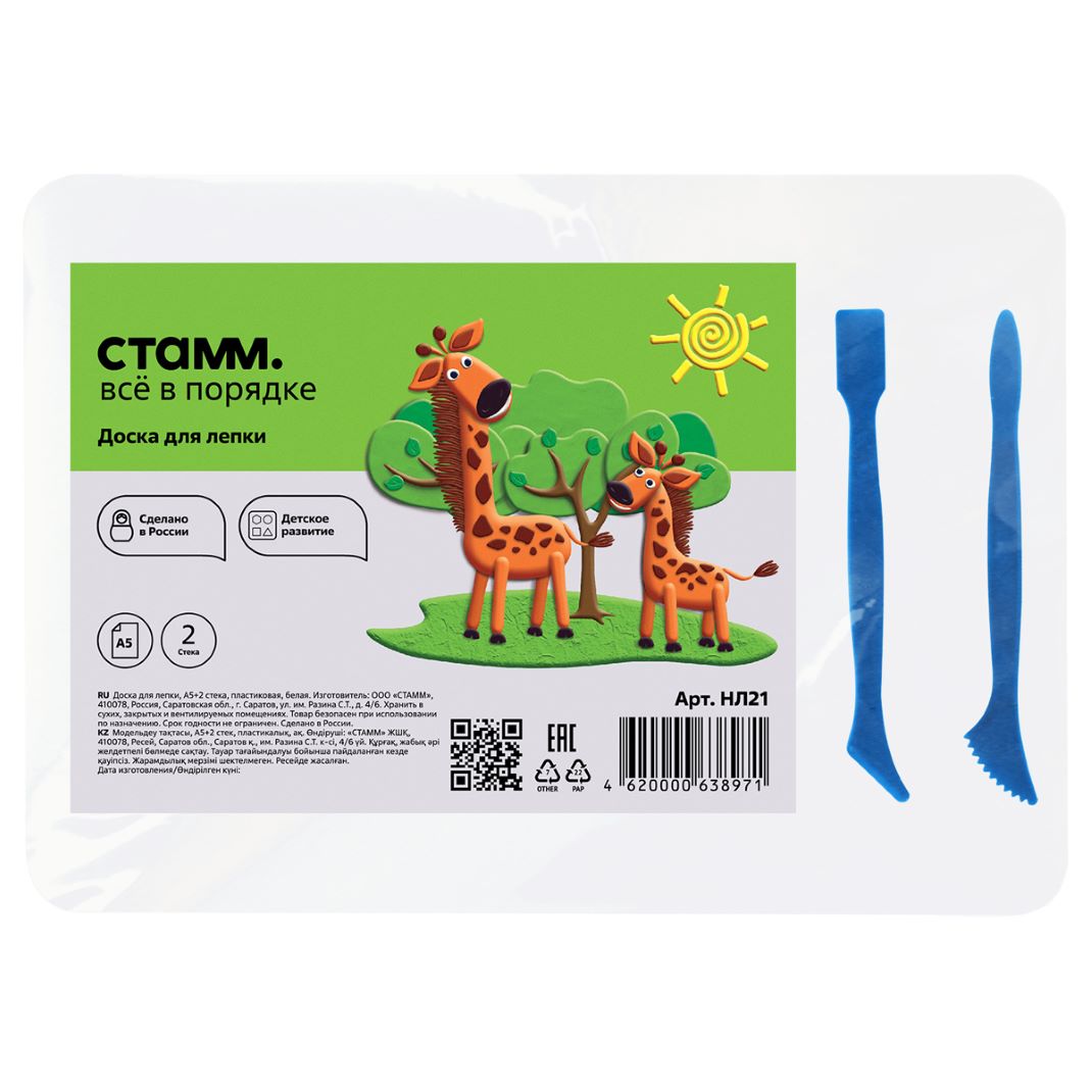 Доска для лепки А5+2 стека пластиковая белая Стамм НЛ21