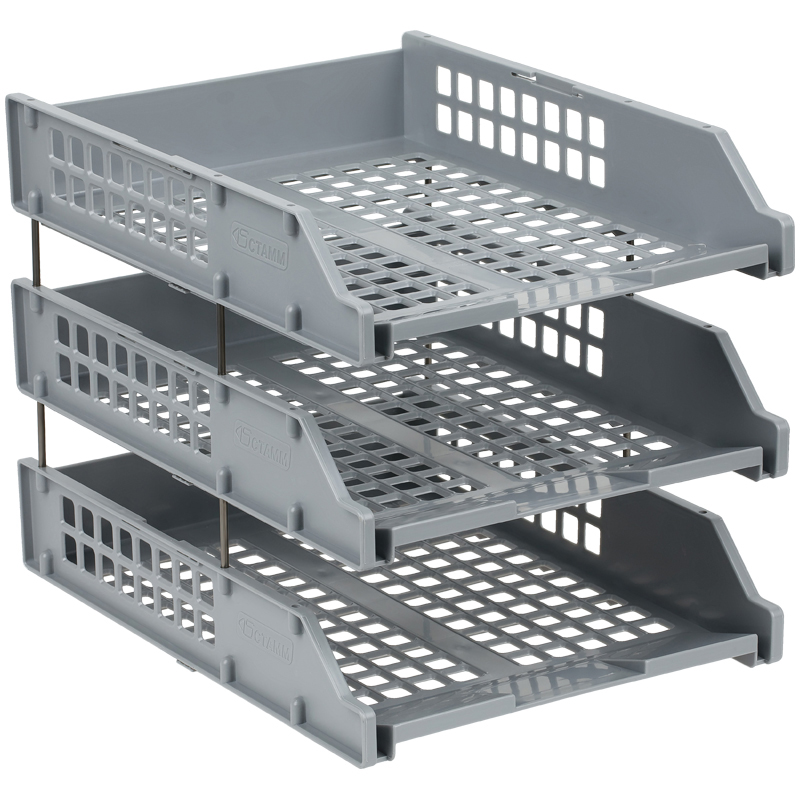 Лоток для бумаг горизонтальный Стамм «Strong» набор 3шт на метал стержнях серый ЛТГ-63794