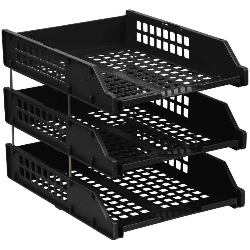 Лоток для бумаг горизонтальный Стамм «Strong» набор 3шт на метал. стержнях черный ЛТГ-63795