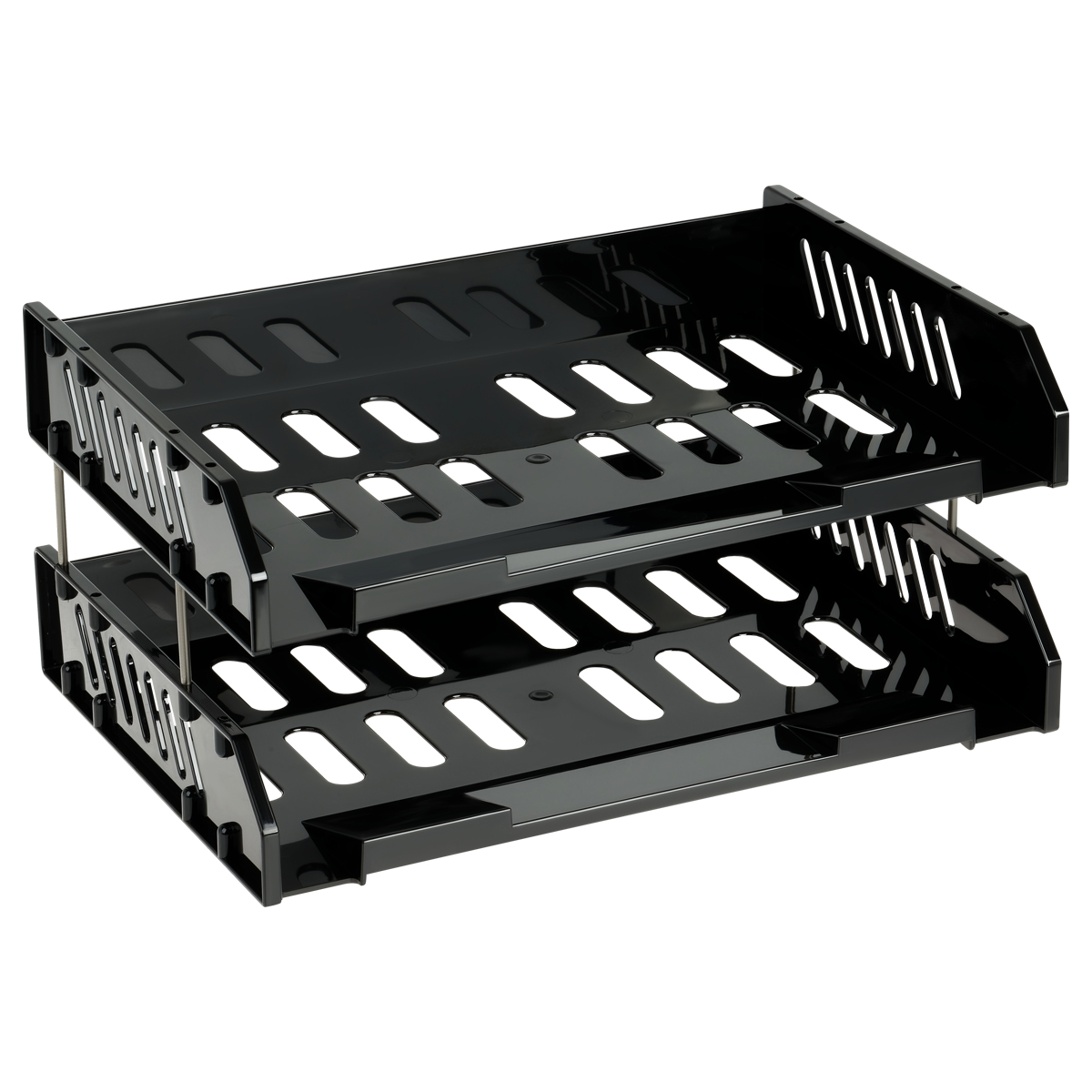 Лоток для бумаг горизонтальный Стамм «Сити» набор 2шт на мет. стержнях, широкая загрузка, черный ЛТГ-30870