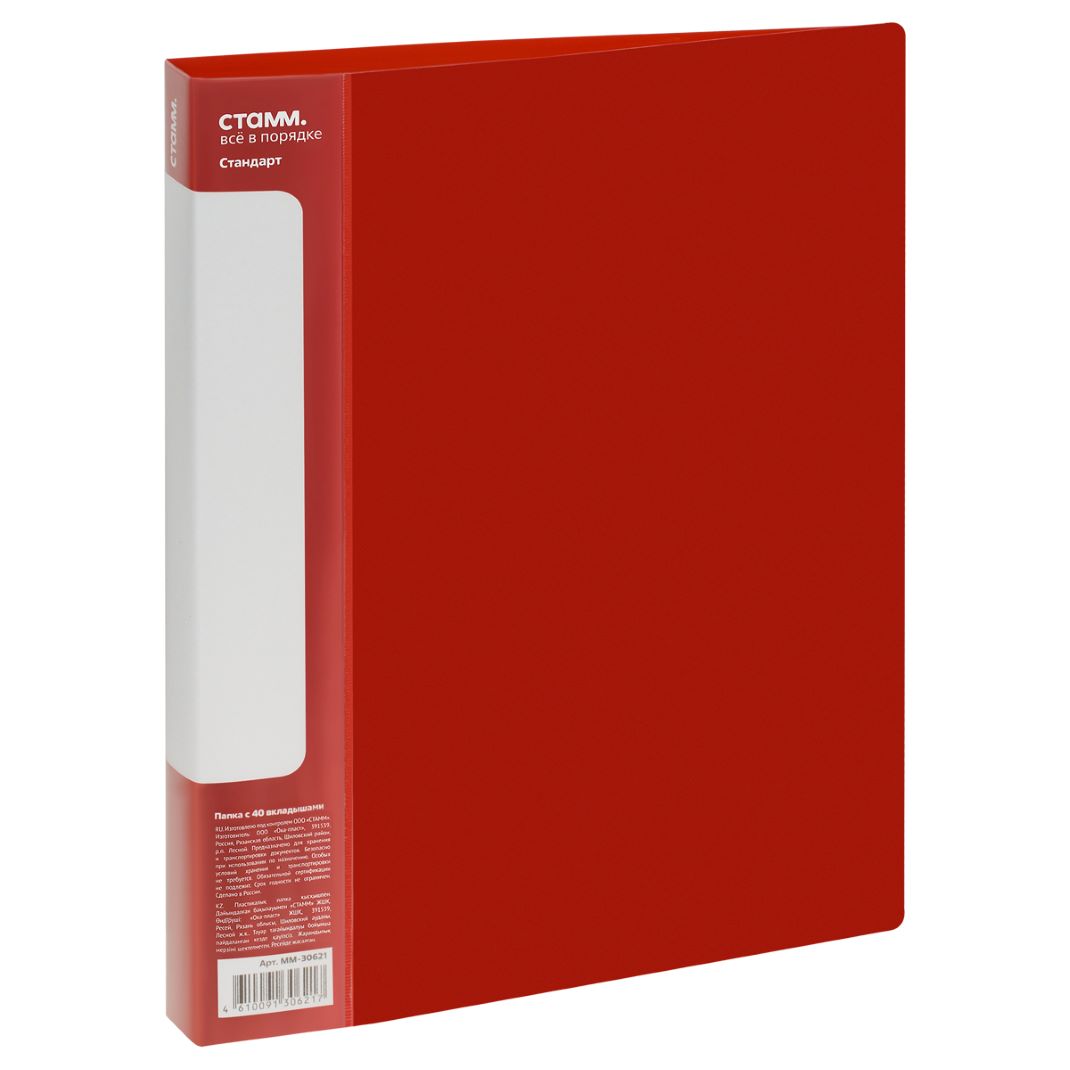 Папка с 40 вкладышами Стамм «Стандарт» А4 21мм 600мкм пластик красная ММ-30621