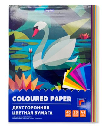Цветная бумага 40л 20цв JOOYDOO QD-21083 2-х сторонняя немелов, склейка, в ПВХ пак.