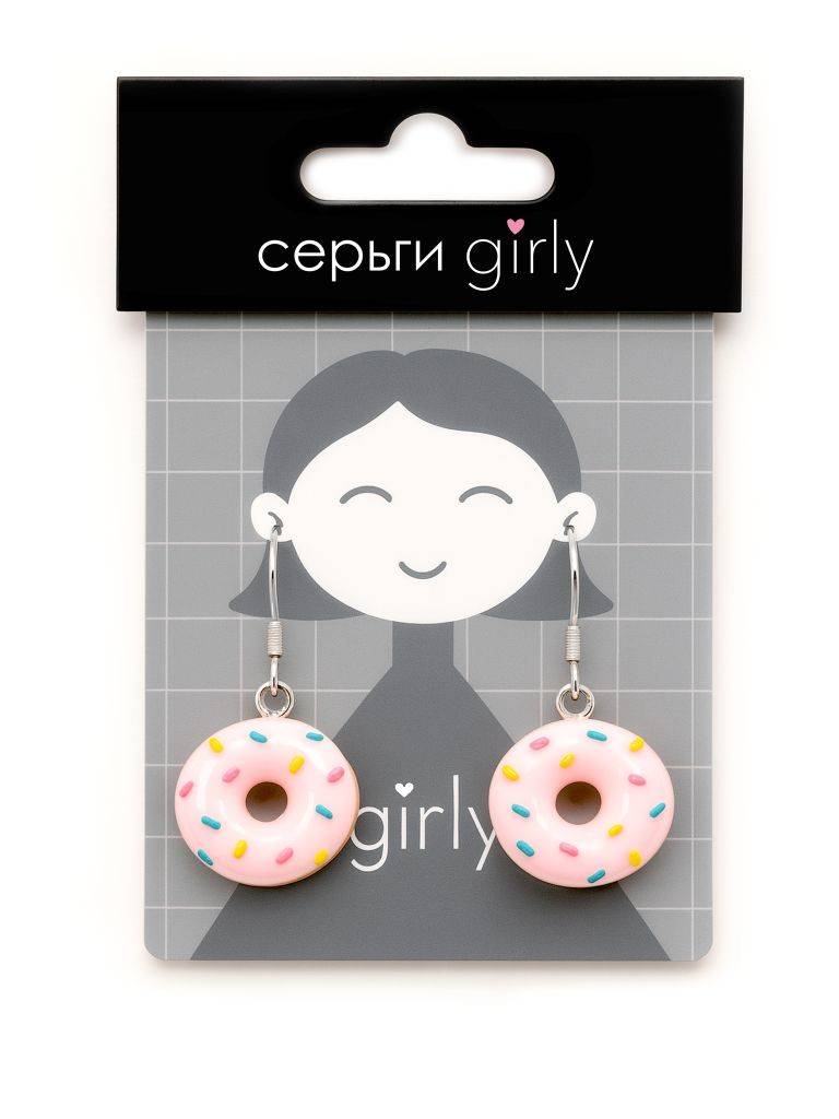 Оригинальные акриловые серьги в форме пончиков с глазурью. Лёгкие и стильные, отлично подходят для подростков и молодёжи. Размер 4,2 x 2 x 0,8 см. Индивидуальная упаковка с европодвесом для удобной выкладки. Размер упаковки: 10,5 x 7 x 0,8 см