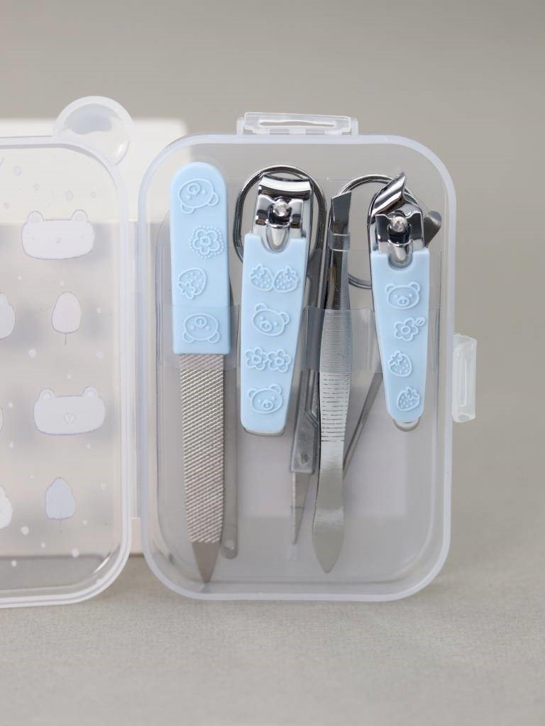 Чехол маникюрного набора выполнен из пластика. В комплект входят 7 инструментов, включая ножницы, щипцы, пинцет, пилочку и т.д. На все инструменты нанесено антикоррозийное покрытие. Закрывается на защёлку. Размер набора: 11 х 7 х 1,8 см.