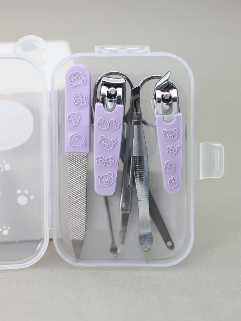 Чехол маникюрного набора выполнен из пластика. В комплект входят 7 инструментов, включая ножницы, щипцы, пинцет, пилочку и т.д. На все инструменты нанесено антикоррозийное покрытие. Закрывается на защёлку. Размер набора: 11 х 7 х 1,8 см.
