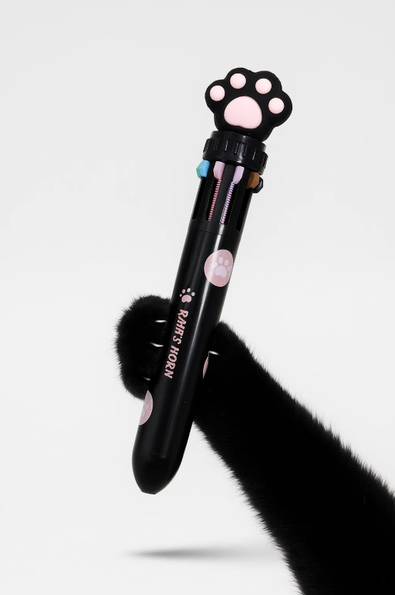 Ручка авт шар 10-ти цветная Черная пушистая лапка 1668