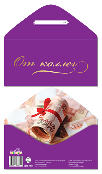 Конверт для денег на склейке КДС2-17641 От коллег (унисекс, однотонный, золотая фольга)