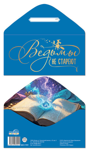 Конверт для денег на склейке КДС2-17651 Ведьмы не стареют (женский, однотонный, золотая фольга)