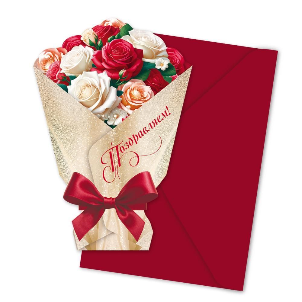 Открытка-букет А5 «Поздравляем!» с художественным конвертом 1216