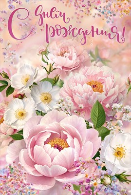 Пакет подарочный с мат.лам. и глит. 18х23х10 см (M) Пионы, 190г(собс.раз.) ППК-2751