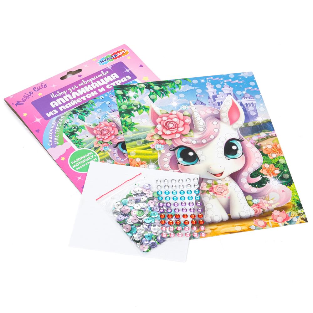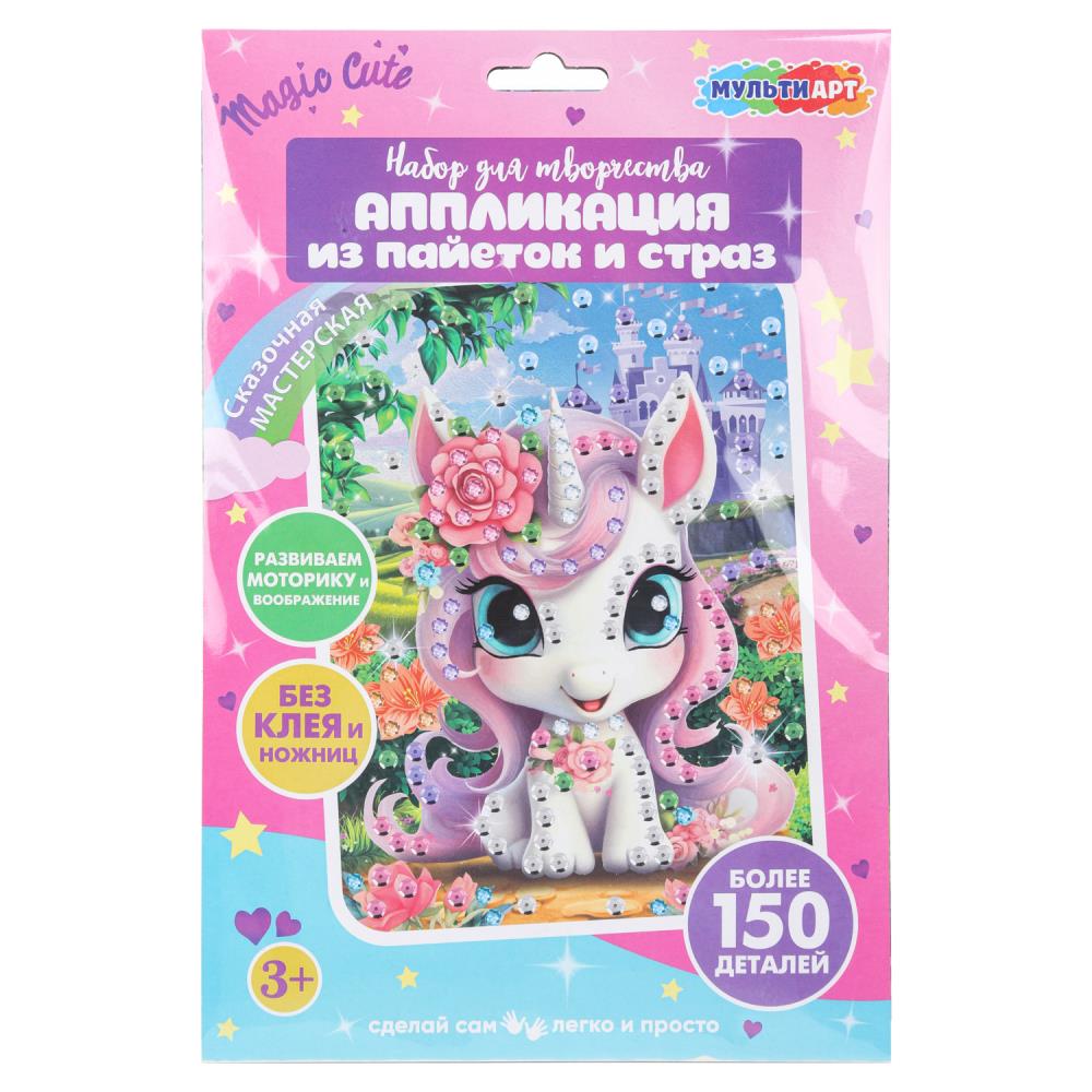 Набор для творчества — аппликация из пайеток и страз «Единорог» из серии «Сказочная мастерская» ТМ «Мульти Арт» — отличный подарок для вашего ребёнка, который будет способствовать развитию его творческих способностей.