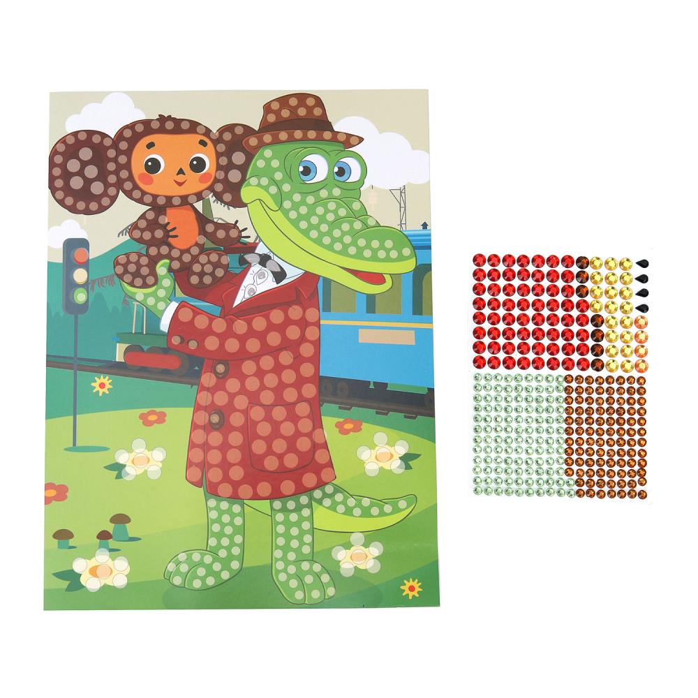 При помощи этого набора маленький художник сможет создать блестящую картину с изображением любимых мультперсонажей — крокодила Гены и Чебурашки, декорированную сверкающими стразами. Готовая поделка станет отличным вариантом для подарка близким или для украшения интерьера детской комнаты.