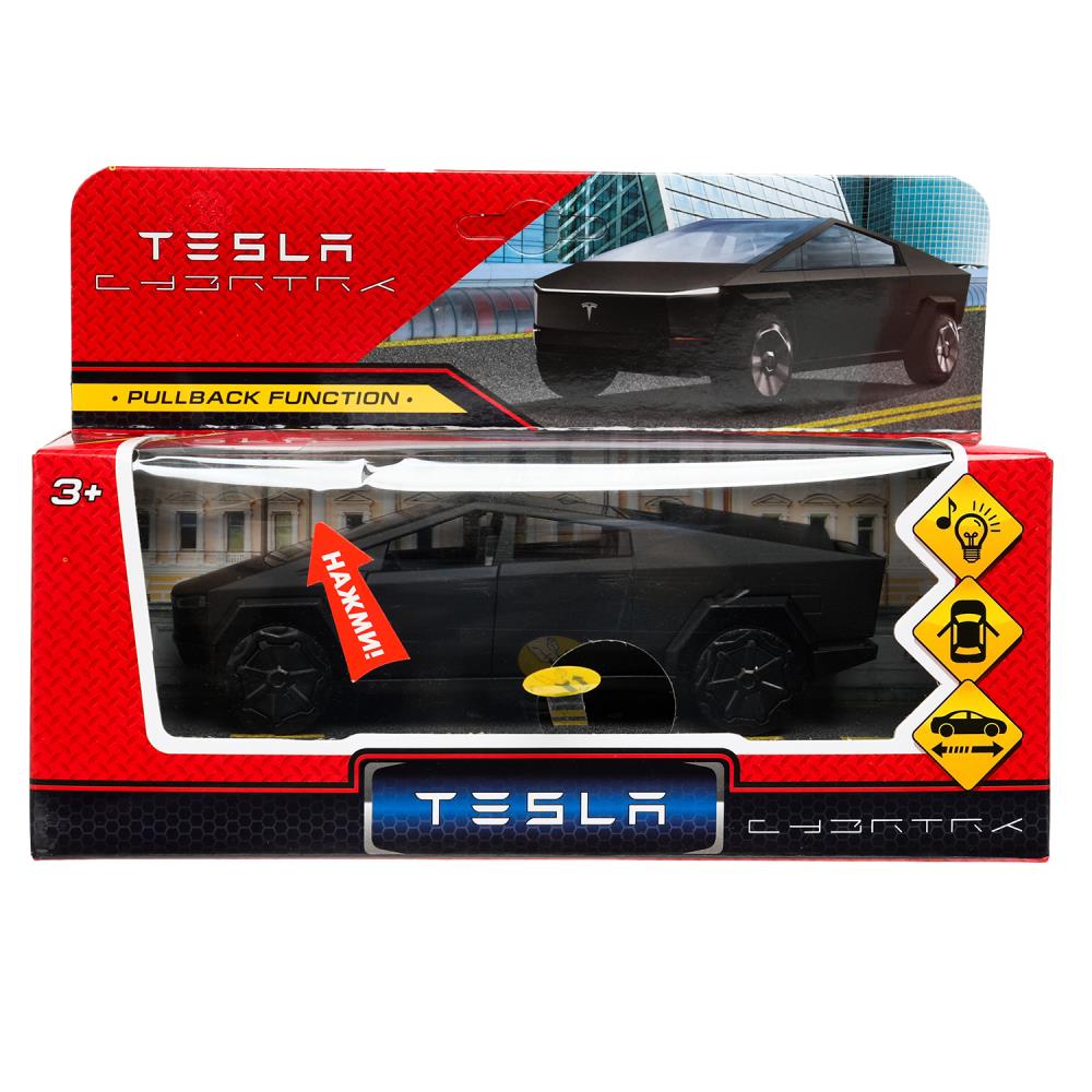 Игрушка Машина Технопарк металл TESLA CYBERTRUCK 13,7 см, свет-звук, двери, инерция, матовый черный 8872