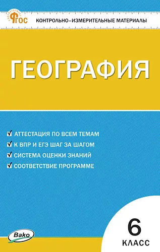 В пособии представлены контрольно-измерительные материалы (КИМы) по географии для 6 класса. Издание составлено в соответствии с требованиями действующего ФГОС. Порядок тем соответствует учебнику А.И. Алексеева и др. (М.: Просвещение), который входит в действующий федеральный перечень учебников.
