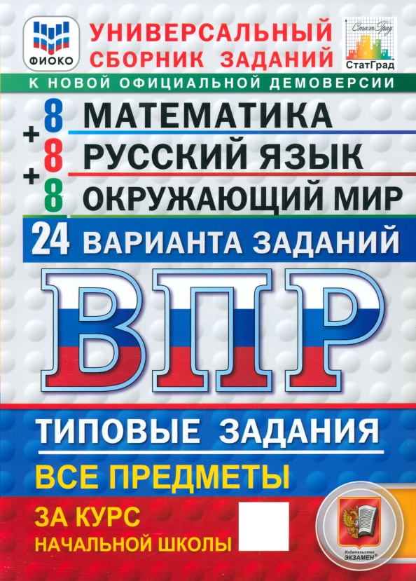 ВПР. ФИОКО. СТАТГРАД. 24 ВАРИАНТА. МАТЕМАТИКА. РУССКИЙ ЯЗЫК. ОКРУЖАЮЩИЙ МИР. 4 КЛАСС. ТЗ. ФГОС НОВЫЙ