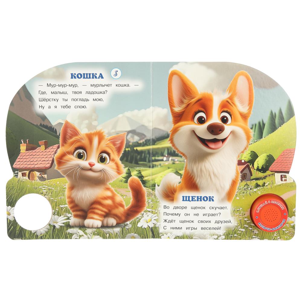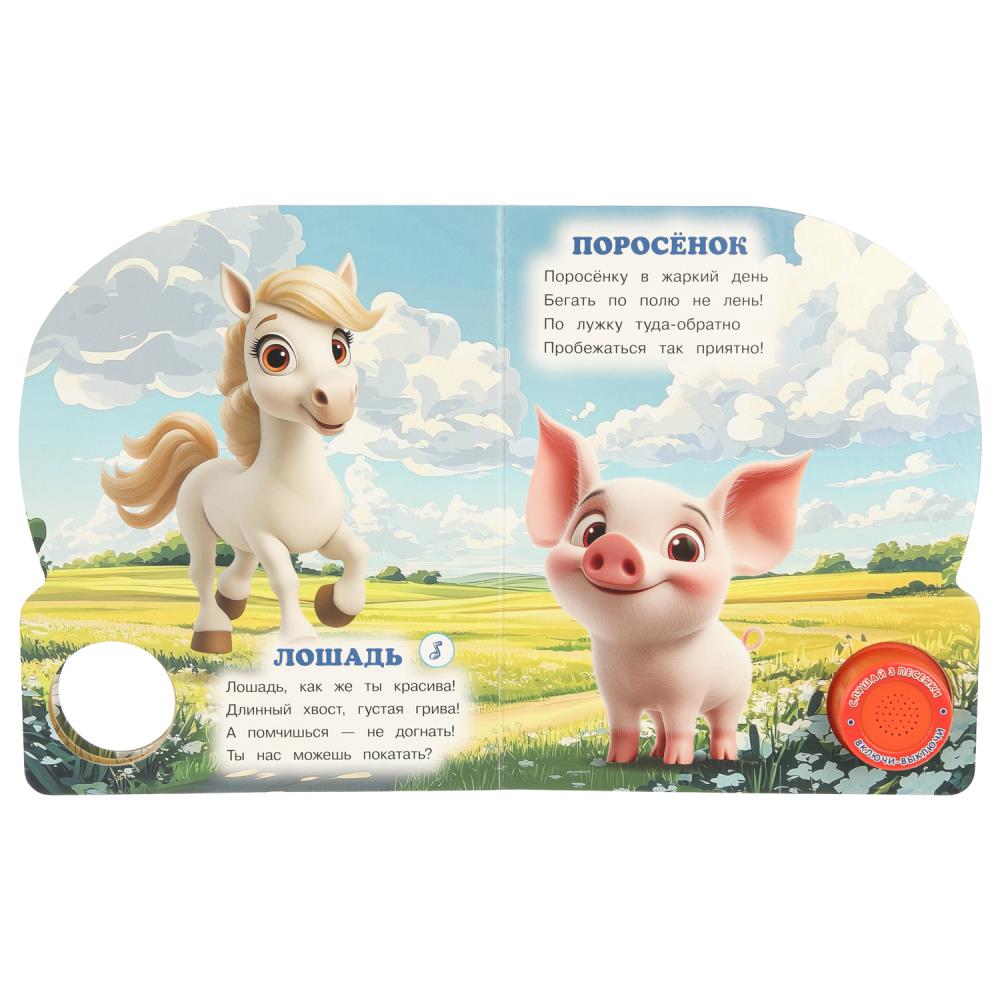 Малыш с удовольствием будет листать плотные страницы, рассматривать яркие картинки, читать вместе с родителями интересные стихи, знакомиться с обитателями фермы и слушать песенки про них. Ребёнок легко освоит включение звука: по нажатию на кнопку песенка включится, при втором нажатии выключится. Благодаря удобному формату книгу можно взять с собой в дорогу.