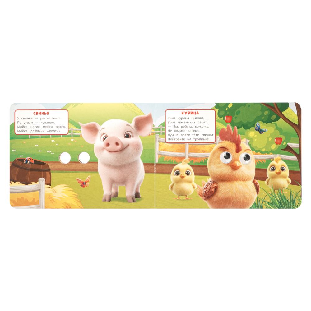 Яркая книга со стихами Владимира Степанова об обитателях фермы непременно заинтересует ребёнка. Большие яркие картинки, интересные стихи и объёмные глазки, благодаря которым персонажи выглядят совсем как живые, не оставят равнодушным маленького читателя и подарят ему много весёлых и увлекательных минут игры с этой книгой. Компактный размер издания позволяет взять её с собой даже в путешествие.