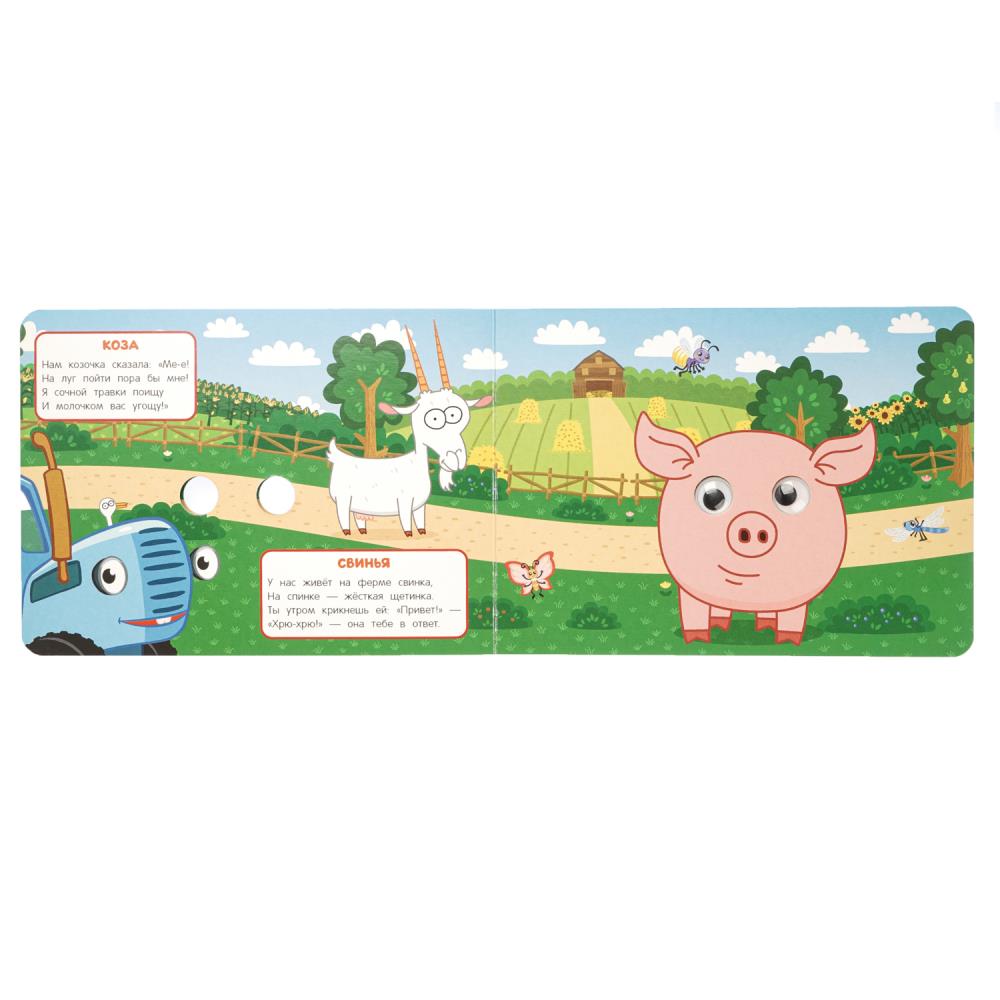 Яркая книга с Синим Трактором и забавными обитателями фермы непременно заинтересует ребёнка. Большие яркие картинки, интересные факты и объёмные глазки, благодаря которым персонажи выглядят совсем как живые, не оставят равнодушным маленького читателя и подарят ему много весёлых и увлекательных минут игры с этой книгой. Компактный размер издания позволяет взять её с собой даже в путешествие.