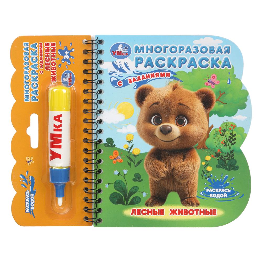Раскраска водная многоразовая с водным маркером Лесные животные Умка