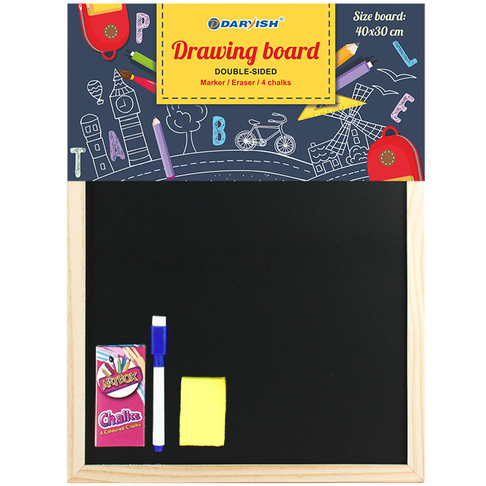 Доска для рисования двусторонняя маркерно-меловая 40*30см + губка + маркер + 4 мелка Darvish 1765