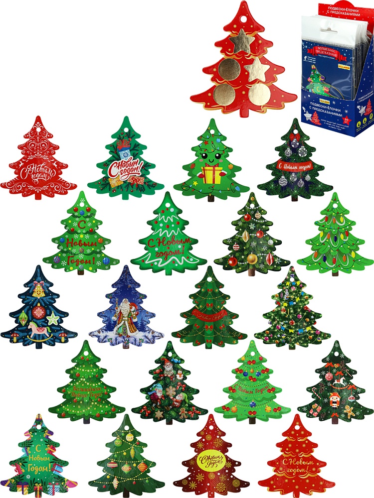 Подвеска с предсказаниями под скретч слоем (100х90мм) «Ёлочки» ассорти НУ-5973