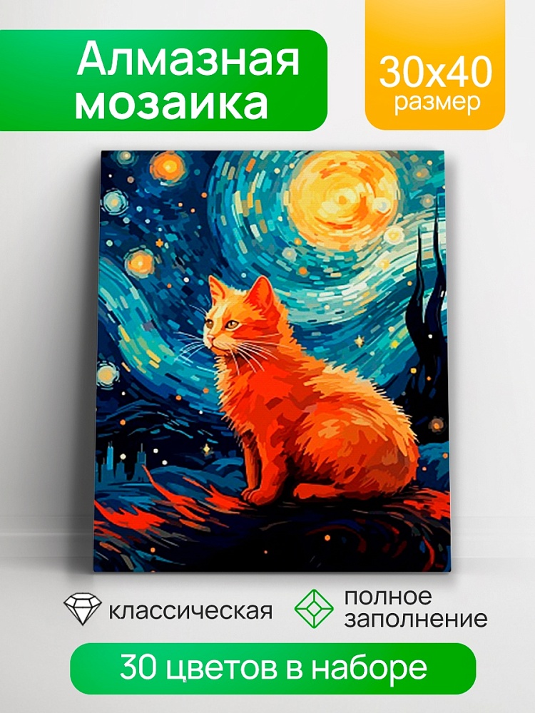 Алмазная мозаика (клас.) 30х40 см, с подр., с полн. заполн. (30цв) Кот Ван Гога (Арт. НД-0409)