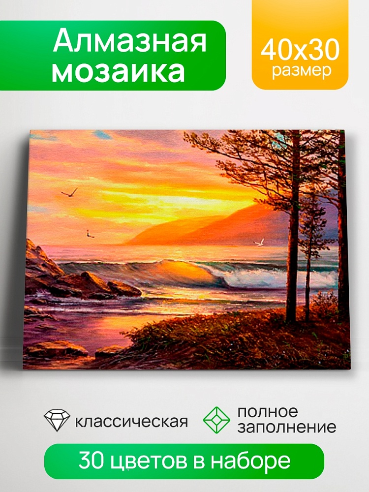 Алмазная мозаика (клас.) 30х40 см, с подр., с полн. заполн. (30цв) Побережье на закате (Арт. НД-0394)