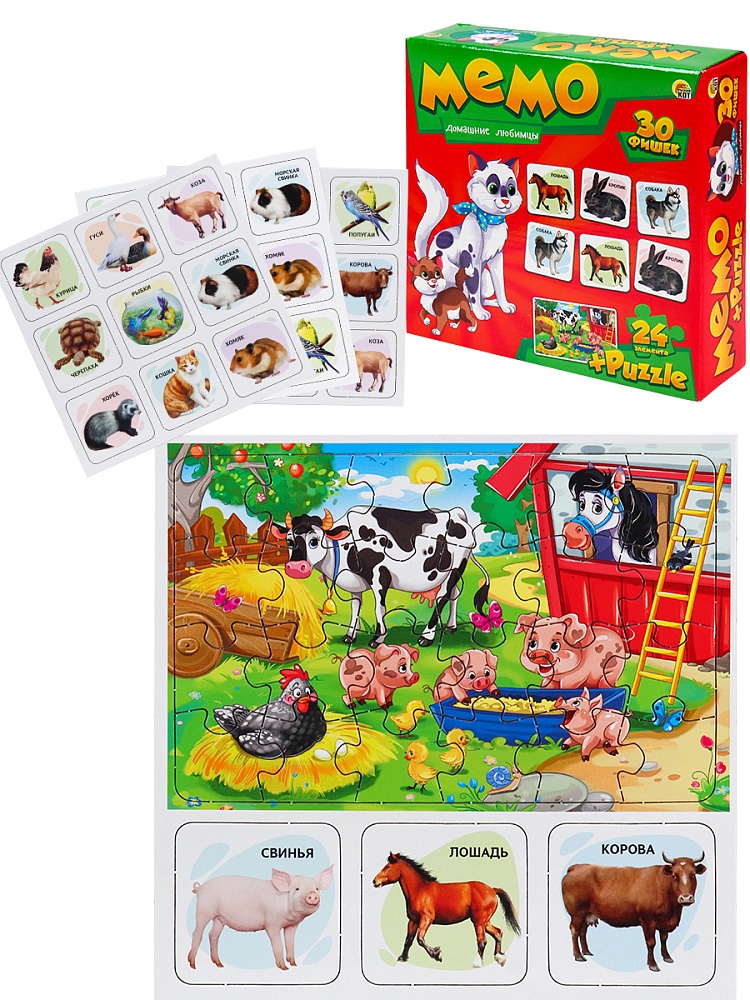 Наст игра МЕМО (30 фишек) + ПАЗЛЫ (24 элемента). Домашние любимцы (Арт. МП-0366)