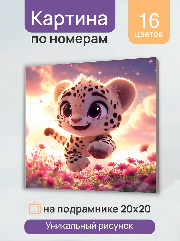 Холст с красками 20х20 см по номерам (в коробке) (16 цв.) Бегущий снежный барс (арт.Х-0747)