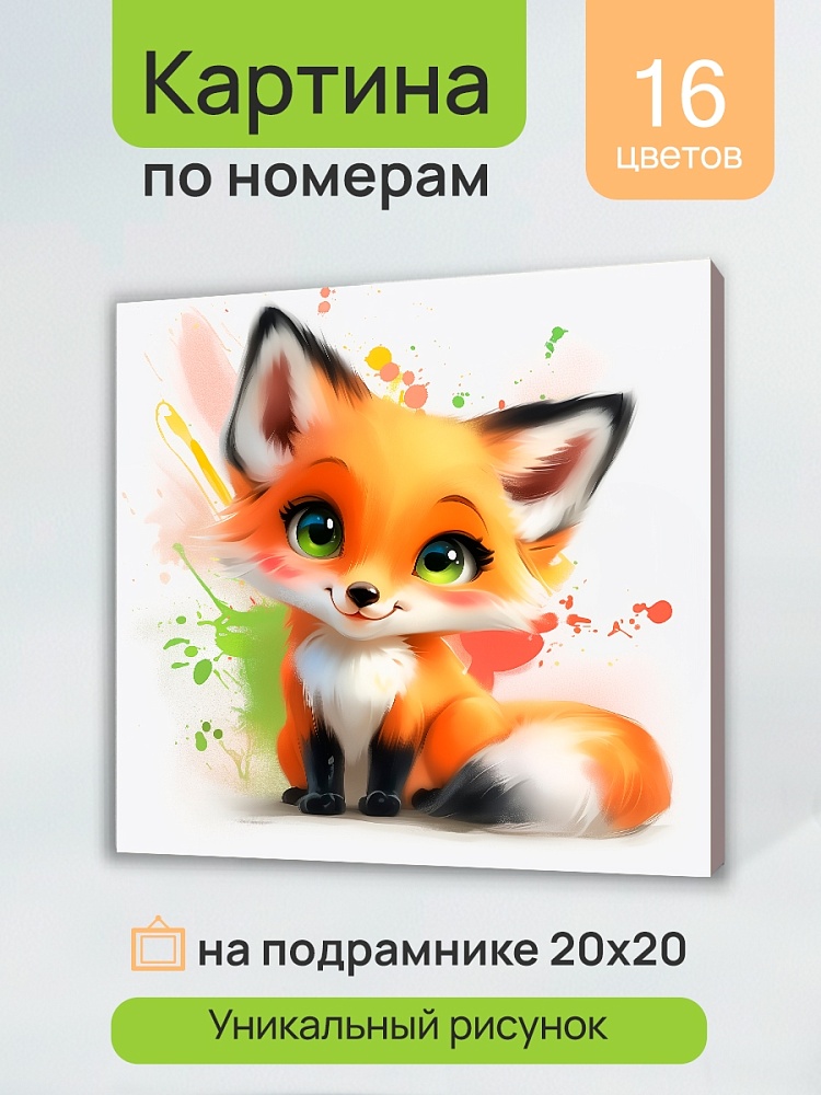 Холст с красками 20х20 см по номерам (в коробке) (16 цв.) Красочная лисичка (арт.Х-0737)
