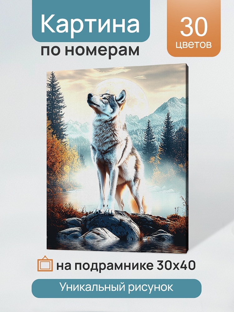 Холст с красками 30×40 см по номерам (в коробке) (30 цв.) Одинокий серый волк (арт.ХК-3240)