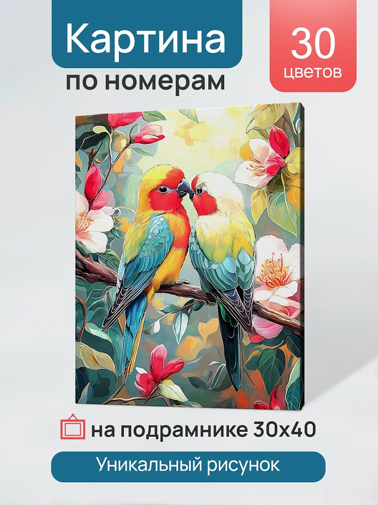 Холст с красками 30×40 см по номерам (в коробке) (30 цв.) Яркие попугаи-неразлучники (арт.ХК-3231)