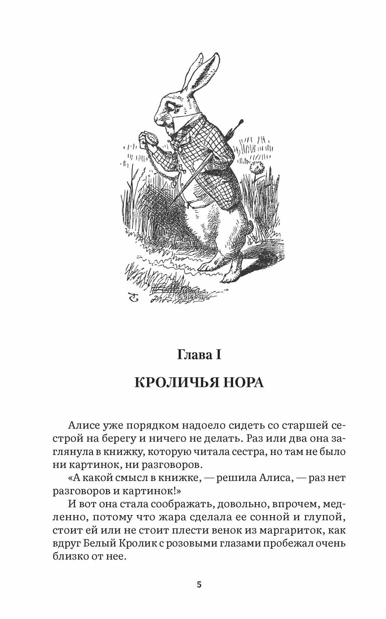В данном издании «Алиса в Стране Чудес» представлена в специально адаптированном для русского читателя переводе Анатолия Адольфовича Д’Актиля 1922 года. Текст сопровождается иллюстрациями британского художника сэра Джона Тенниела, который был первым иллюстратором книг Льюиса Кэрролла о приключениях Алисы.
