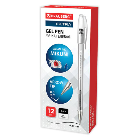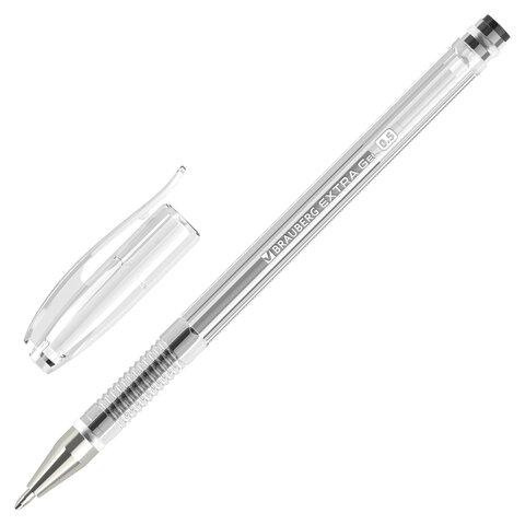 Ручка гел черн 0,5мм BRAUBERG EXTRA корпус прозрачный, линия 0,35мм 143900