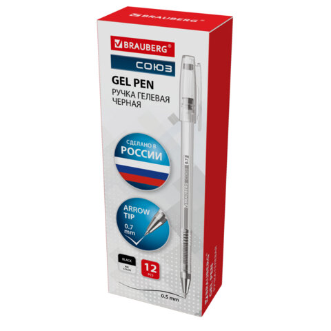 Ручка гел черн 0,7мм BRAUBERG РОССИЯ «СОЮЗ» корпус прозрачный, линия 0,5мм 143963