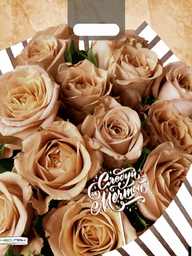 Пакет подарочный с мат.лам. и глит. 18х23х10 см (M) Пионы, 190г(собс.раз.) ППК-2751