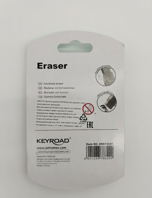 Ластик выдвижной KEYROAD Jelly + запасной ластиком блистер в асс 6290
