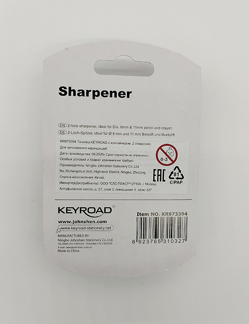 Точилка пластик 2 отверстия с контейнером KEYROAD Iridescent в асс 0327