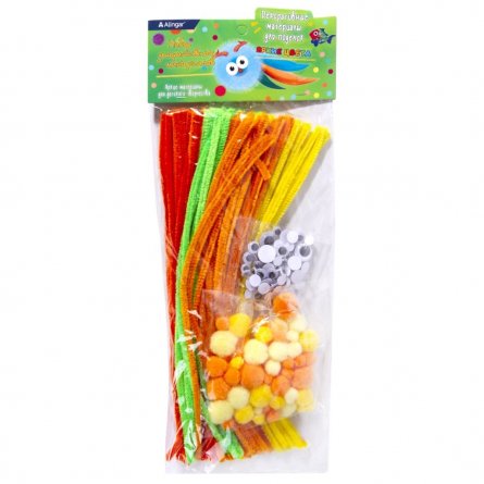 Набор для творчества Alingar Проволока пушистая-30 см 80 шт, Помпоны-90 шт, Глазки-90 шт, «Красный, зеленый, желтый, оранжевый», пакет с европодв 7692