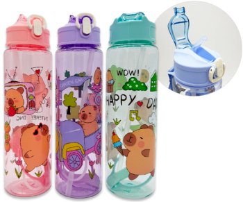 Бутылка для воды 750мл DN-209 25х7см, пластик, ремешок, прозрн с рисунком в асс 2093