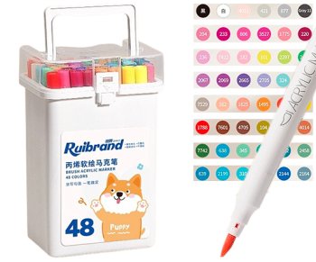Маркеры акриловые 48цв 1-4мм DN-27 кисть, в пластиковом боксе 0272
