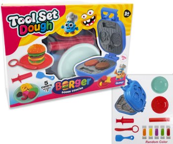 Набор д/лепки «Бургер» гриль, скалка, лопатка, тарелки 5 тесто 5цв DM-172 0754