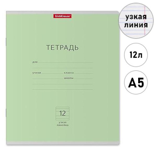 Тетрадь 12 узкая линейка ErichKrause Классика зеленая 46465