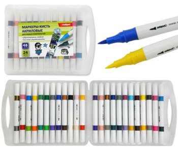 Маркеры акриловые 48цв 24шт 1-4мм INTELLIGENT DE-100 двусторонние, водная основа, футляр 330330
