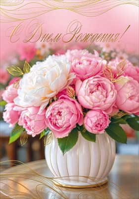 Пакет подарочный с мат.лам. и глит. 18х23х10 см (M) Пионы, 190г(собс.раз.) ППК-2751